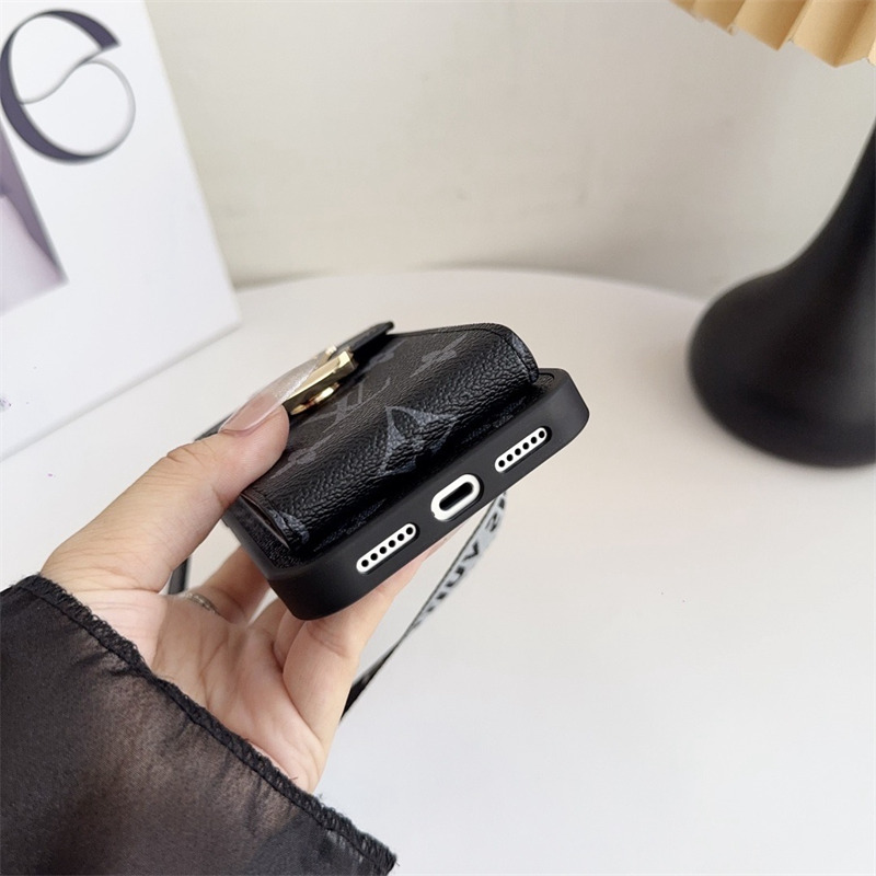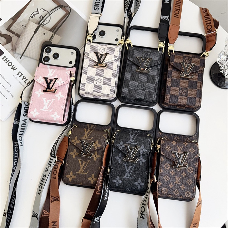 カードホルダーとショルダーストラップが組み合わされたヴィトン風IPhoneケース。